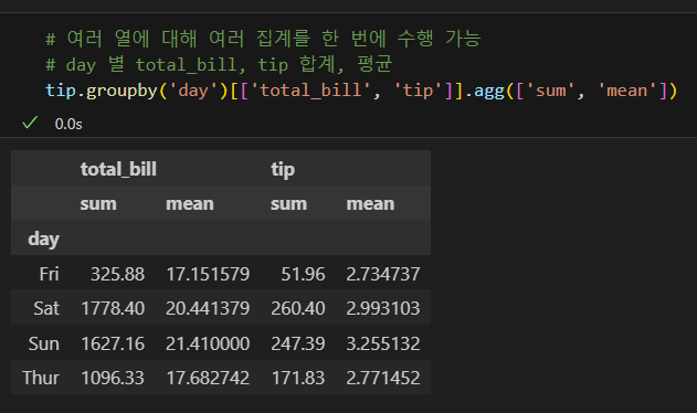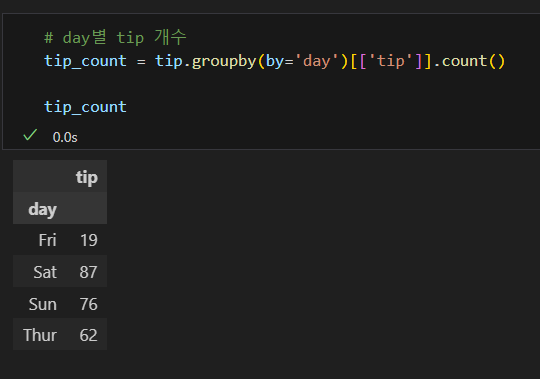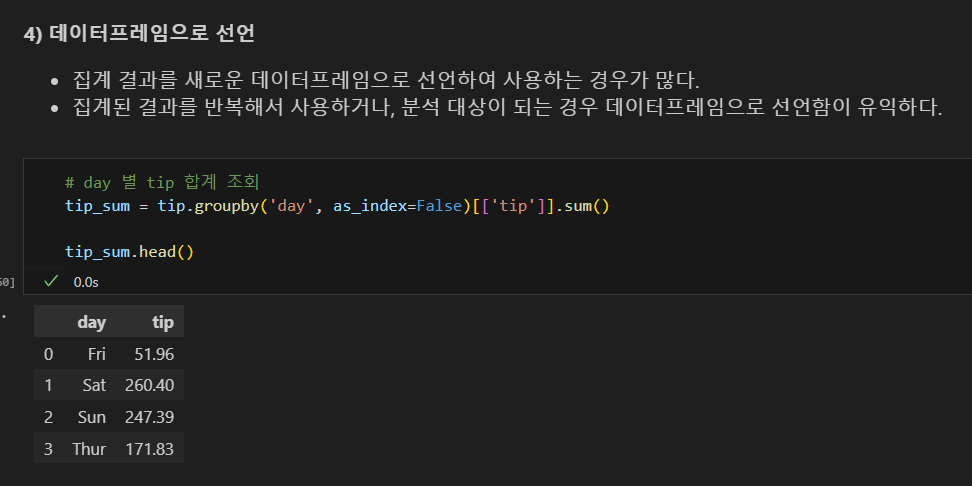 집계 결과를 새로운 데이터프레임으로 선언하는 것이 편의상 좋음.