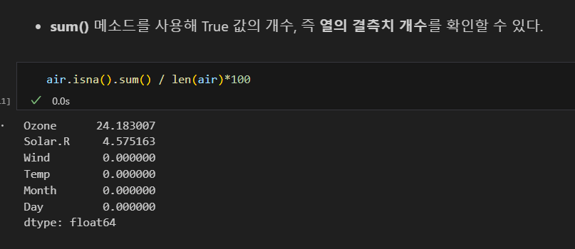 결측치를 만나면 오류가 발생하는 함수도 있다.