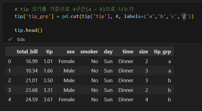 my_bin과 my_label의 범위 개수가 같아야한다.