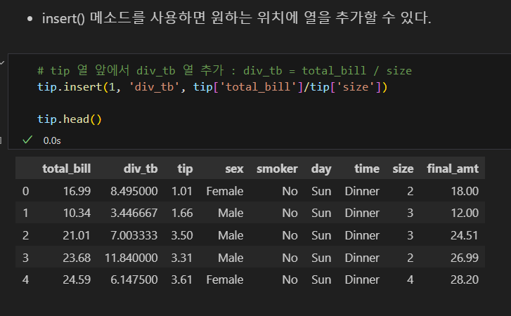 insert()로 열 추가