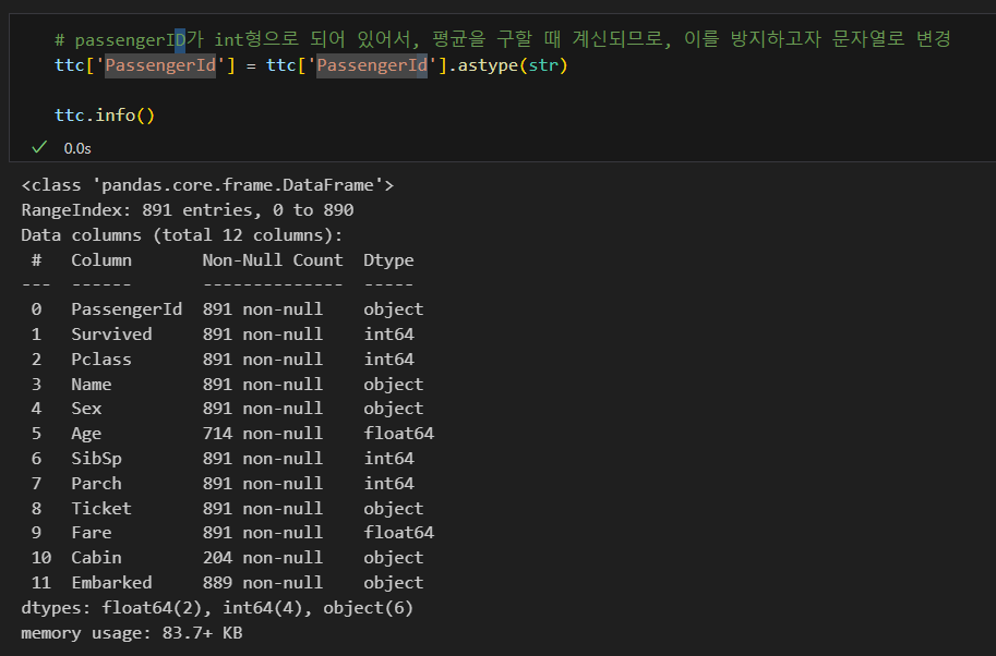승객ID를 문자형으로 바꾸기