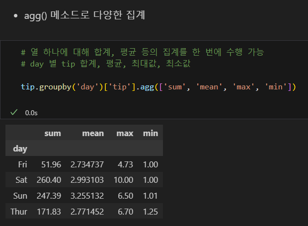 agg 메소드로 열 하나에 대한 집계 한번에 수행