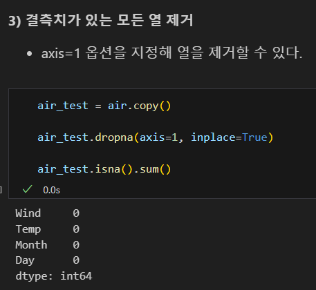 결측치 있는 열 제거