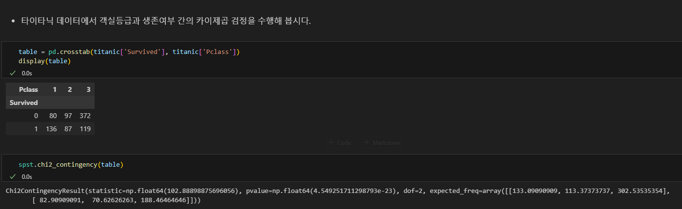 카이제곱 통계량 : 값이 클수록 두 변수 간 연관성이 강하다.