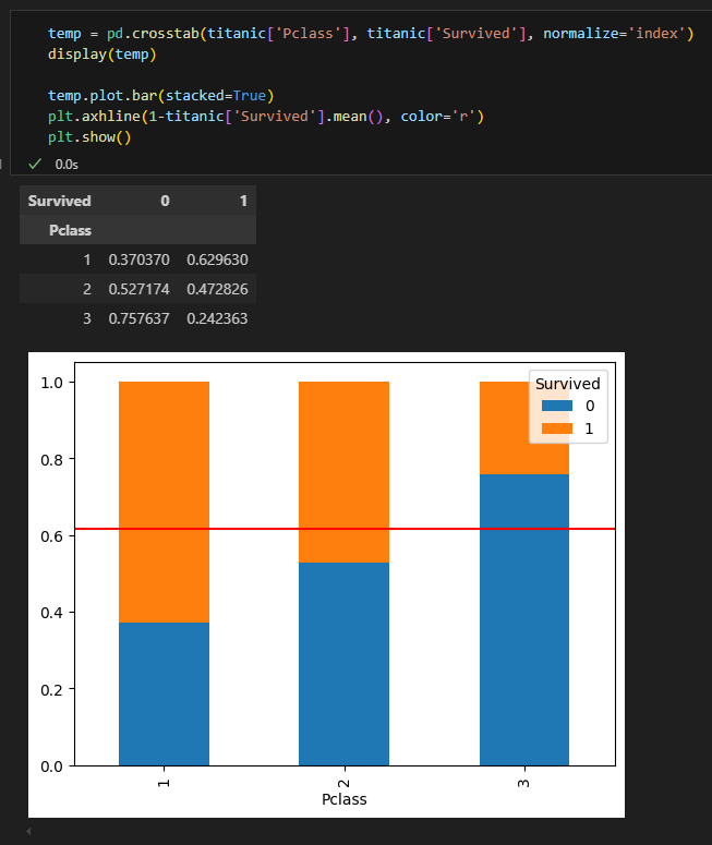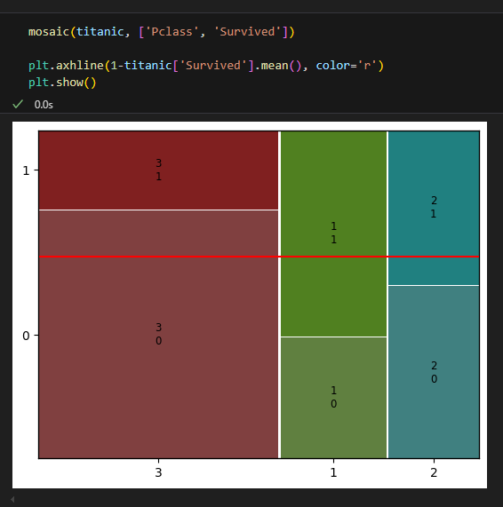 ② 그 중 3등급 객실에 대해서 보면, y축의 길이는, 3등급 객실 승객 중에서 사망, 생존 비율을 의미한다.