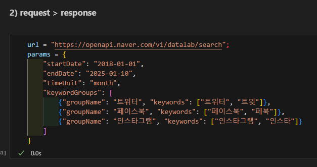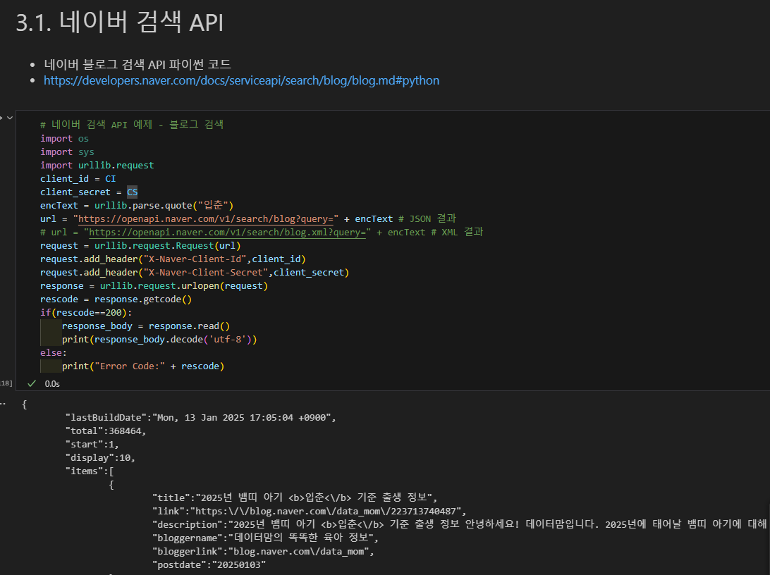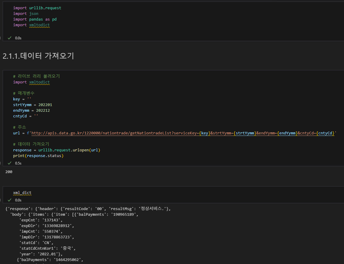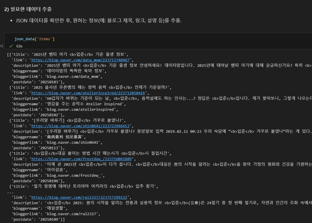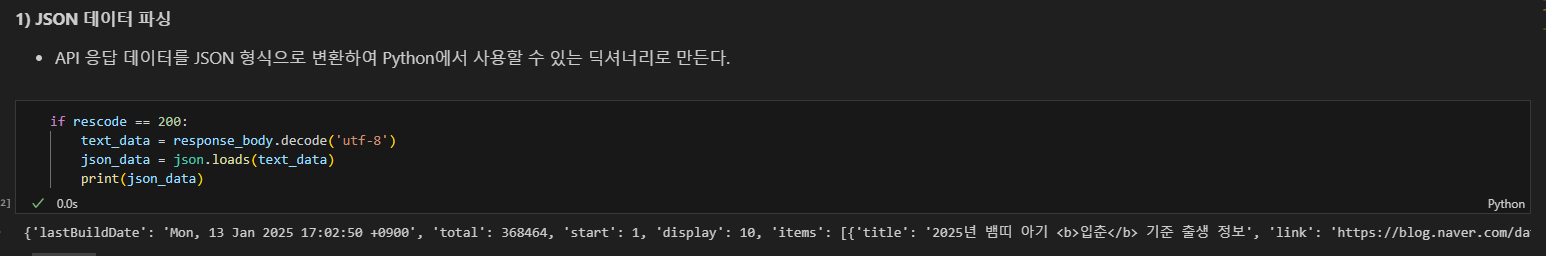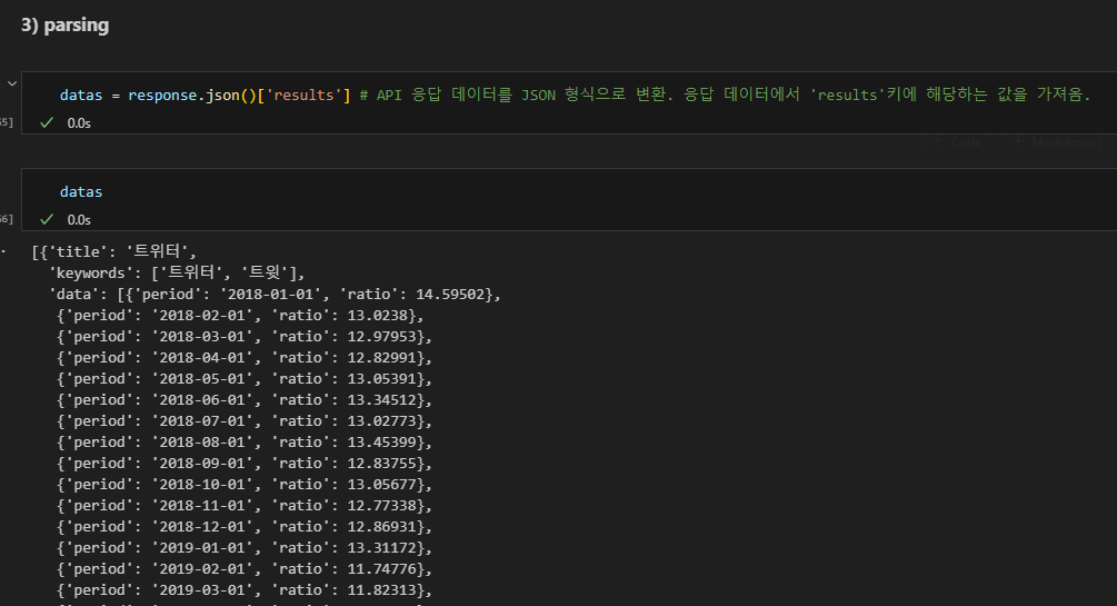 이렇게 json으로 데이터를 가져와서 파이썬에서 딕셔너리나 리스트로 파싱하여 사용한다.