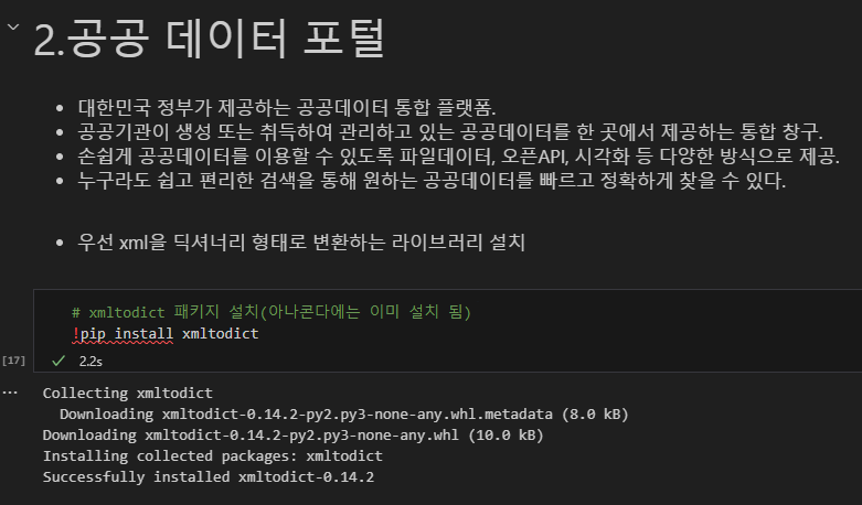 xml을 딕셔너리로 변환하는 라이브러리 설치