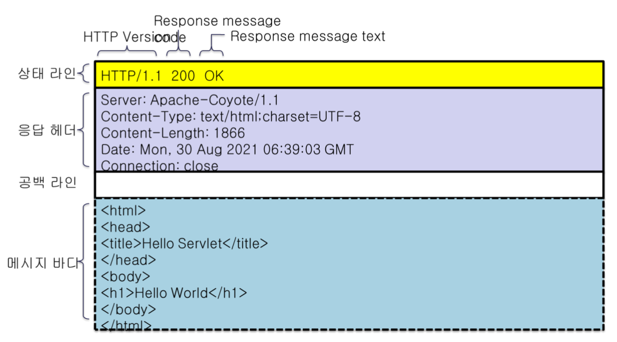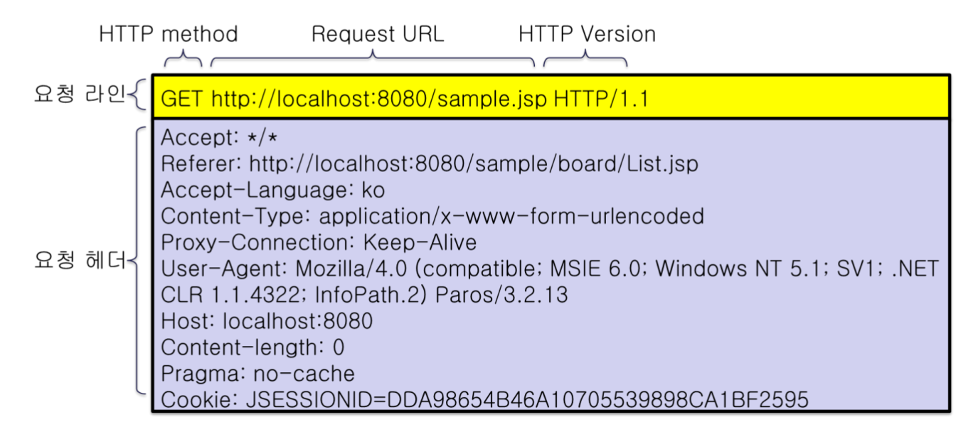 바디영역을 제외한 나머지 영역(요청, 헤더)의 각 라인은 연속된 CR/LF(\r\n) 문자로 구분.