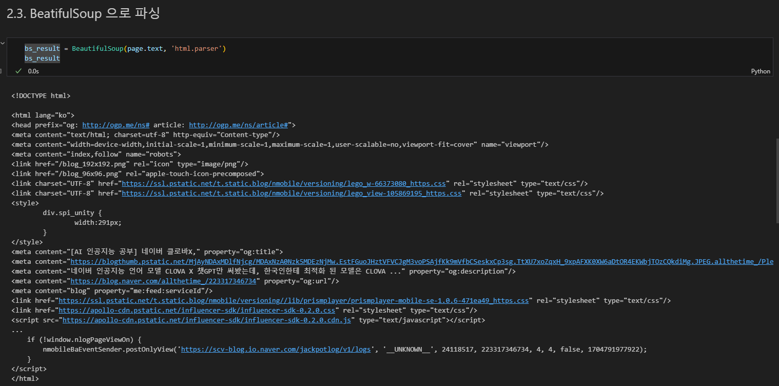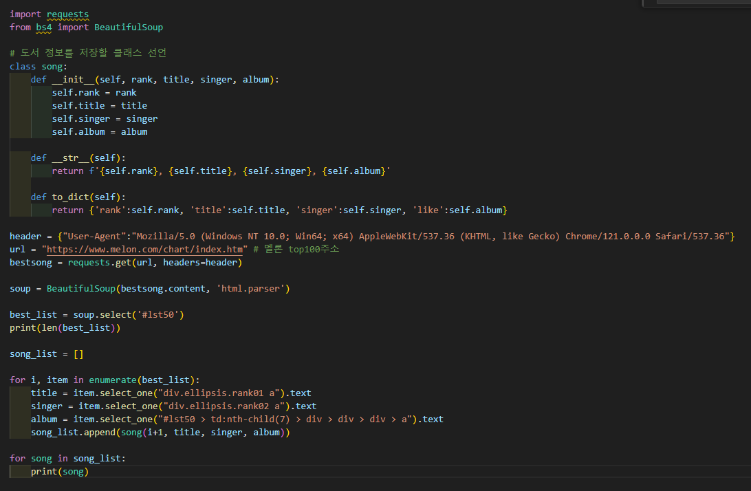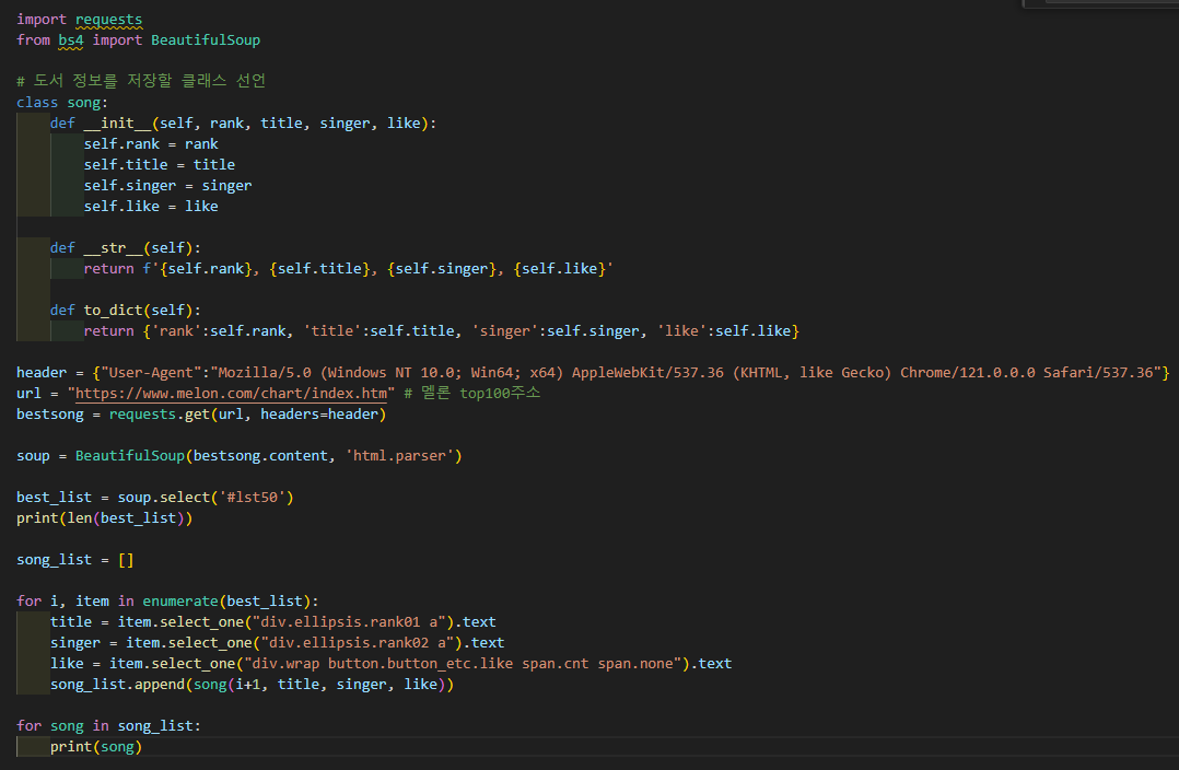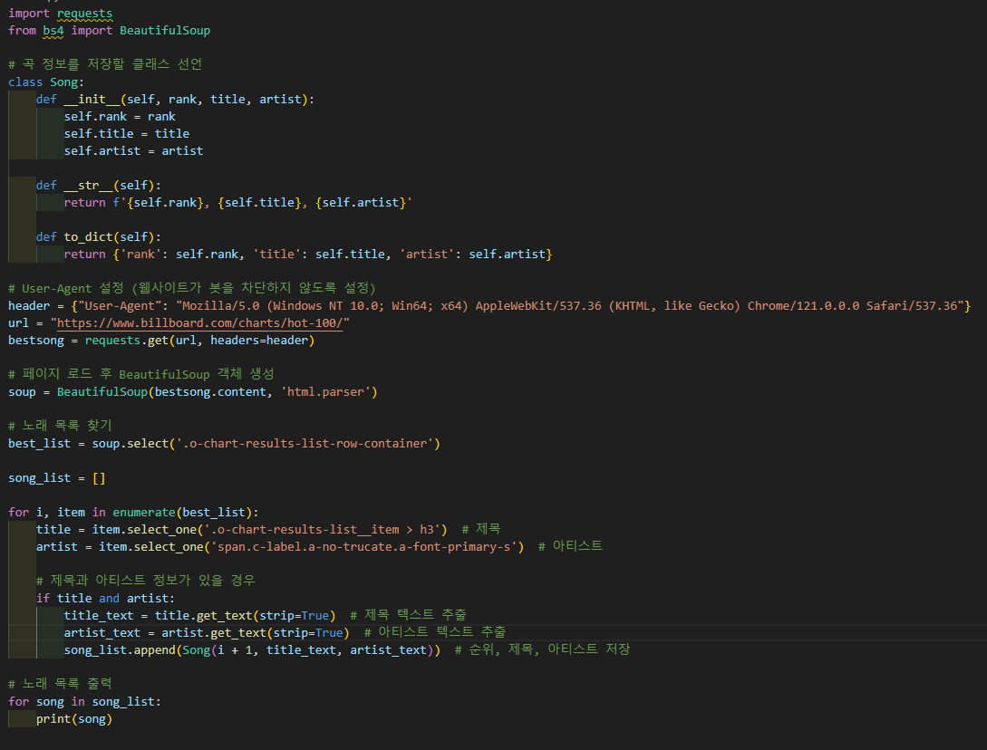 요즘에는 사이트에서 requests를 막는 경우도 많다고 함.