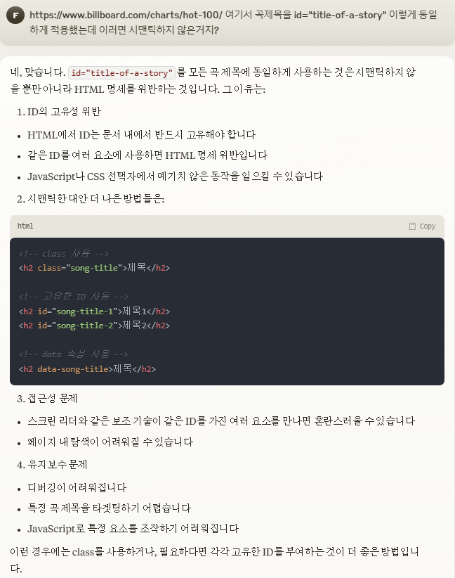 곡제목 100개에 동일한 id가 적용되어 있는 것을 발견하였음.