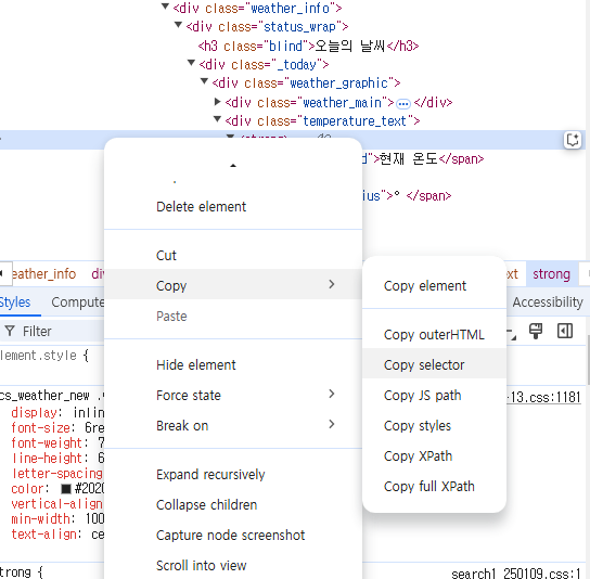 네이버 날씨 정보 찾기 (두번에 걸쳐서)