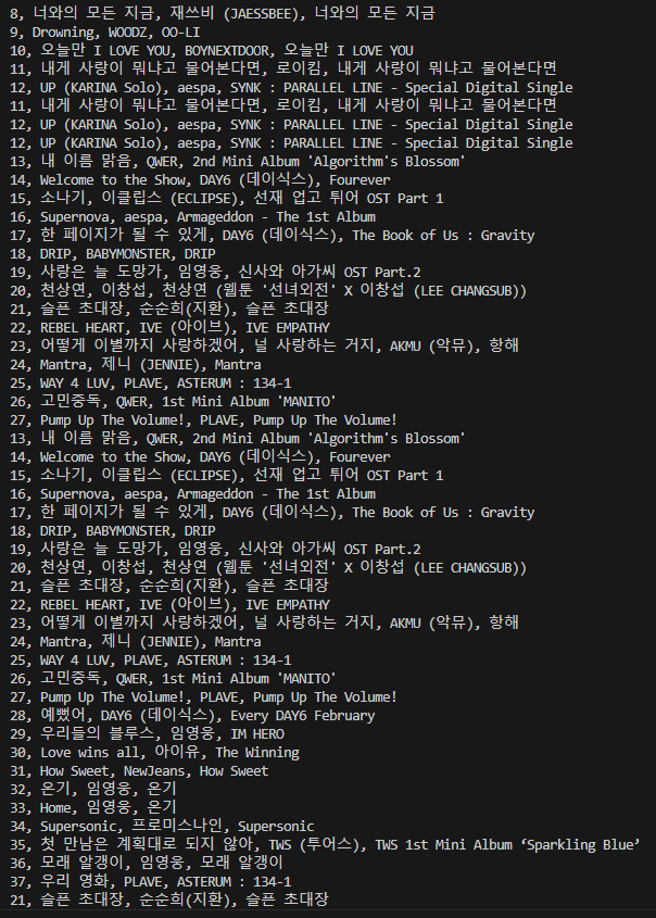 그래서 일단 좋아요수 대신 앨범명으로 대체하여 스크래핑함.