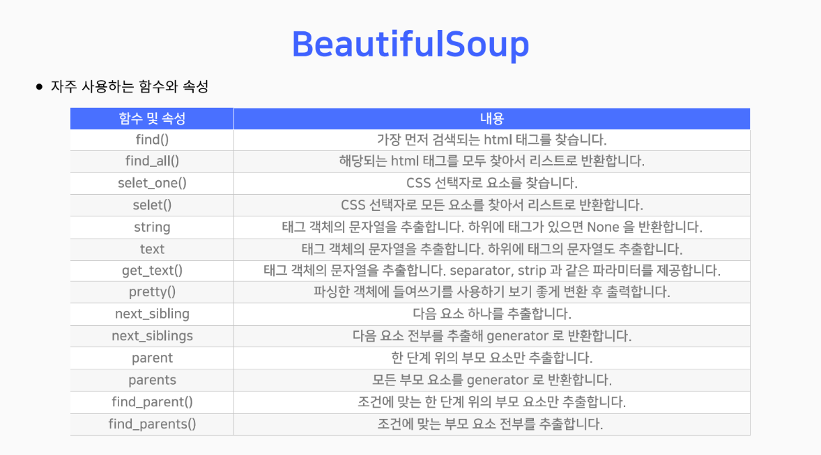find_all() html 태그를 모두 찾아서 리스트로 반환하는 함수