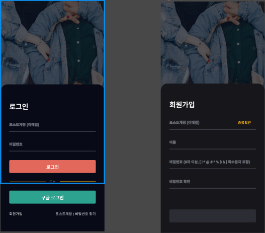 로그인/회원가입(완료)설정(구현 안할 예정)- 상세 화면 디자인