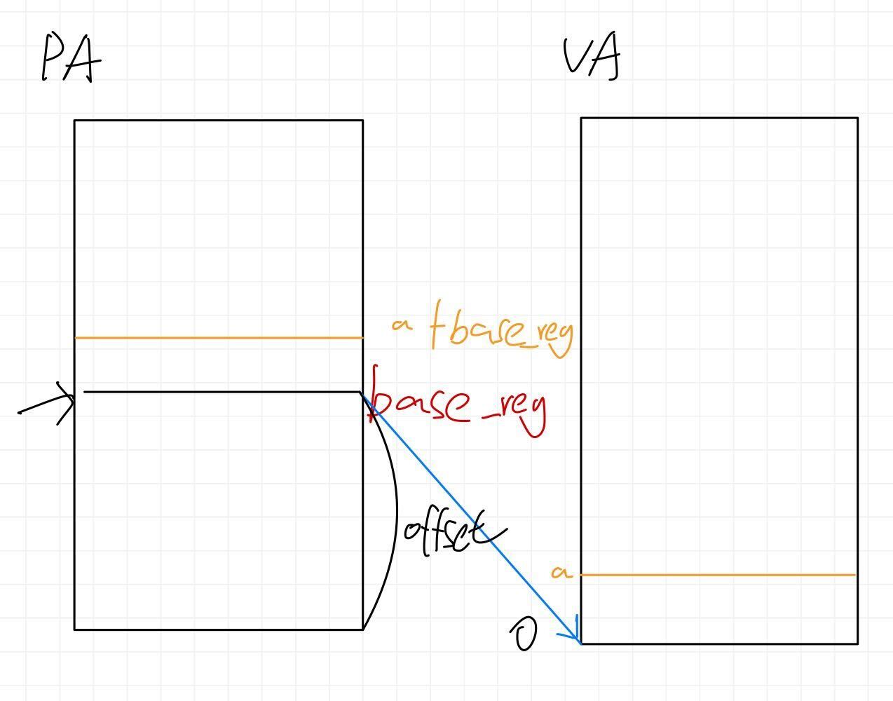 base 레지스터 값은 가상 메모리와 실제 메모리 간 offset 개념