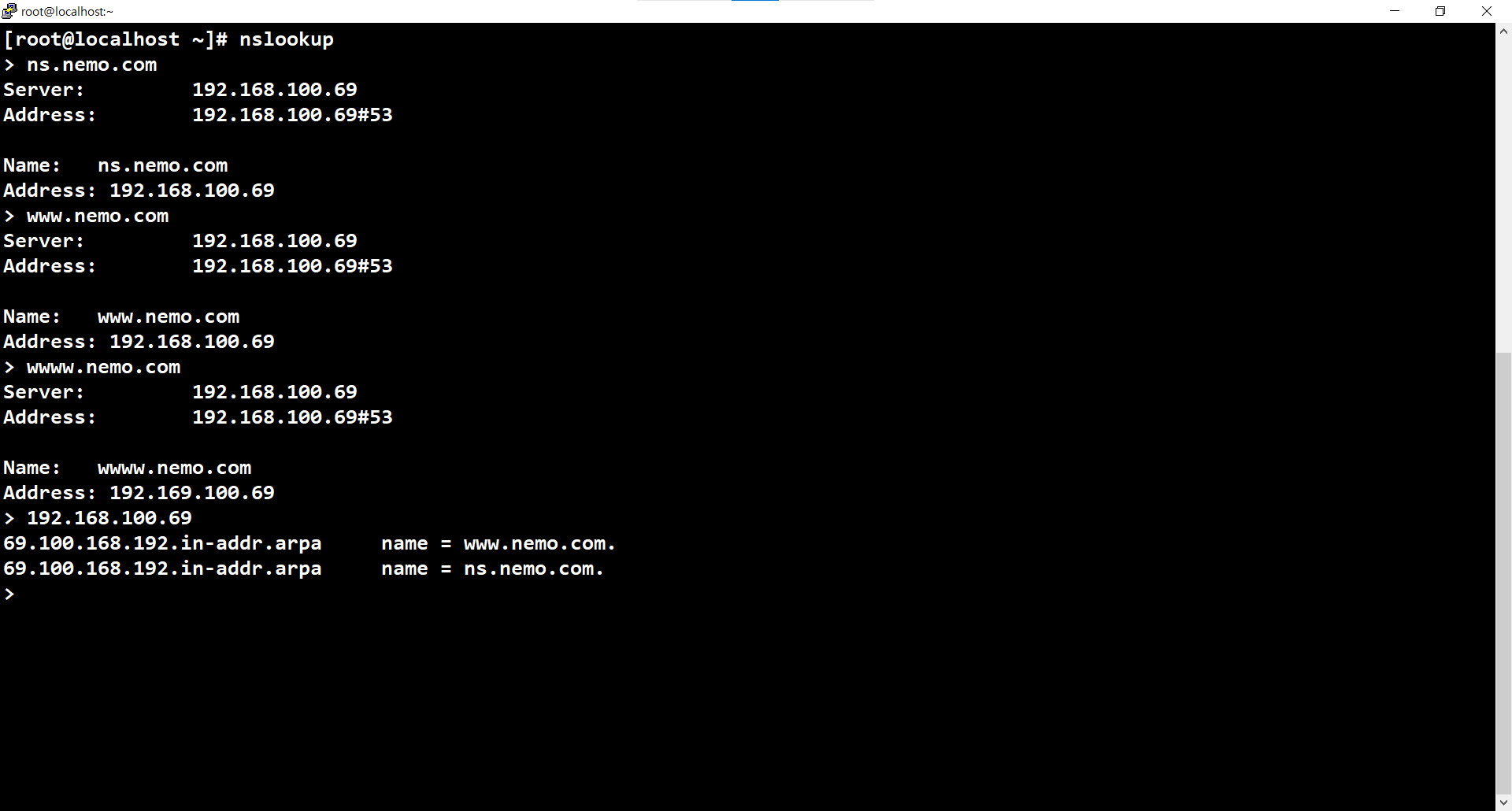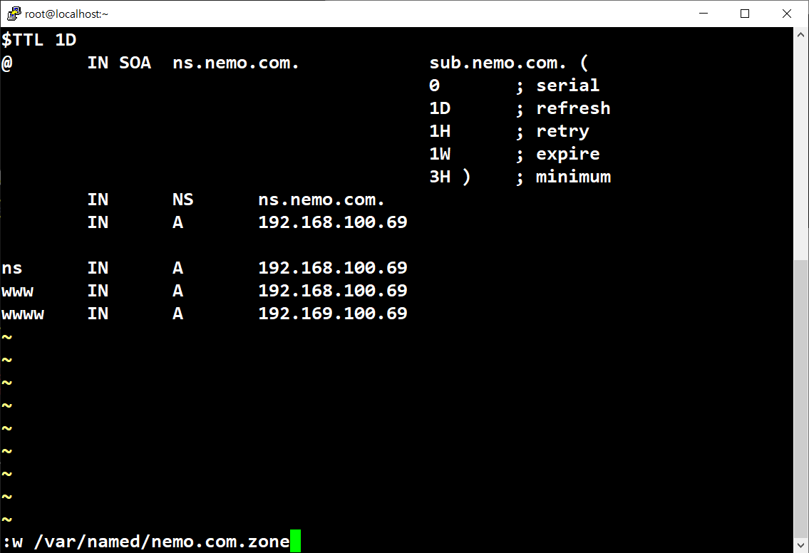 # chmod 660 /var/named/nemo*; chown :named /var/named/nemo*; ls -ld nemo* -rw-rw---- 1 root named 226 2월 26 15:42 nemo.com.rev -rw-rw---- 1 root named 248 2월 26 15:39 nemo.com.zone