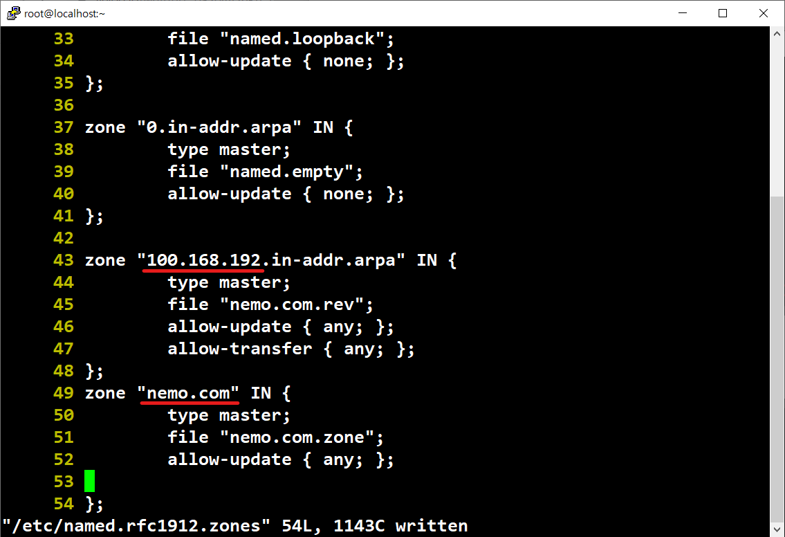 # vi /etc/named.conf