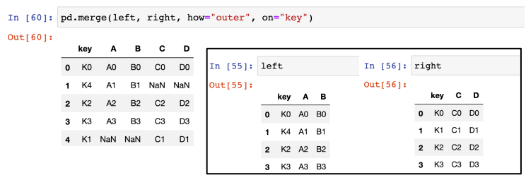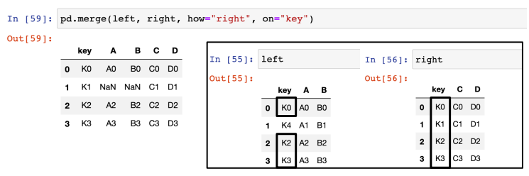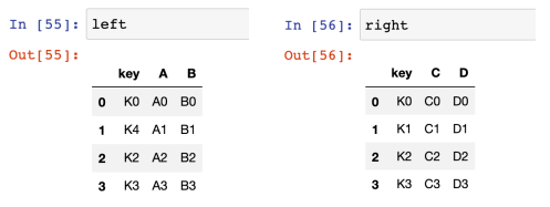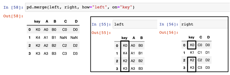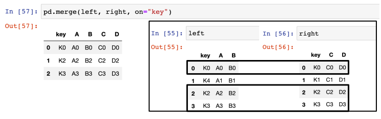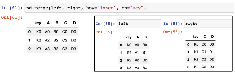 on="key" : key를 기준으로 공통인 것만 (교집합)