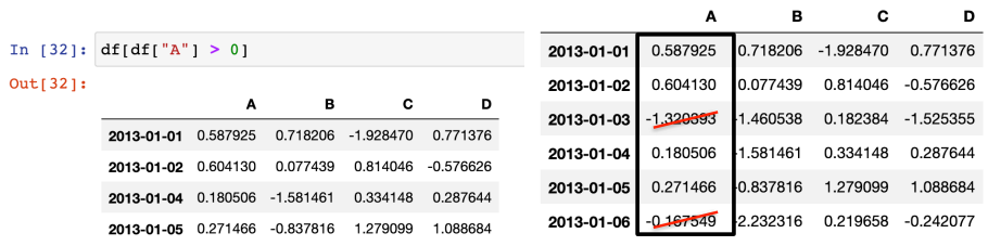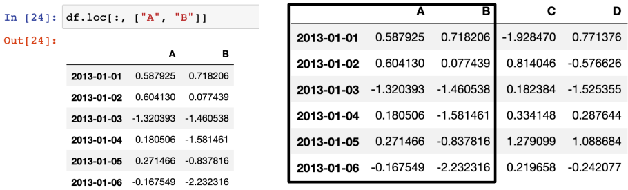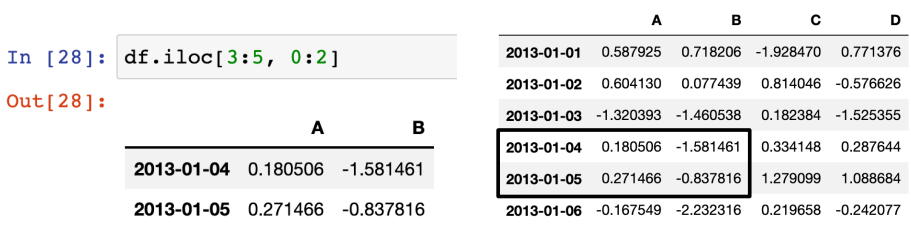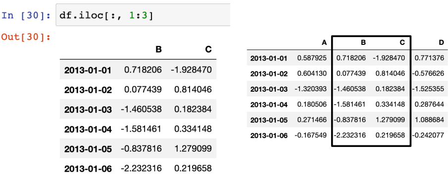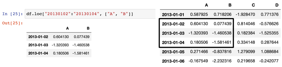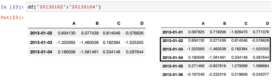 그러나 인덱스나 컬럼의 이름으로 slice하는 경우는 끝을 포함함!