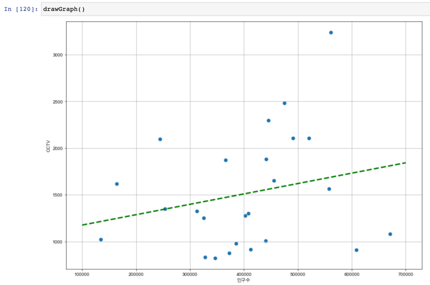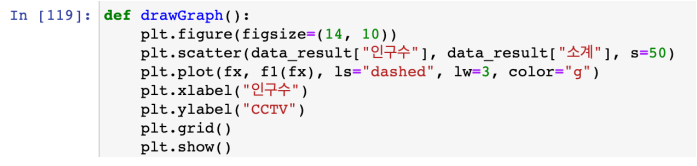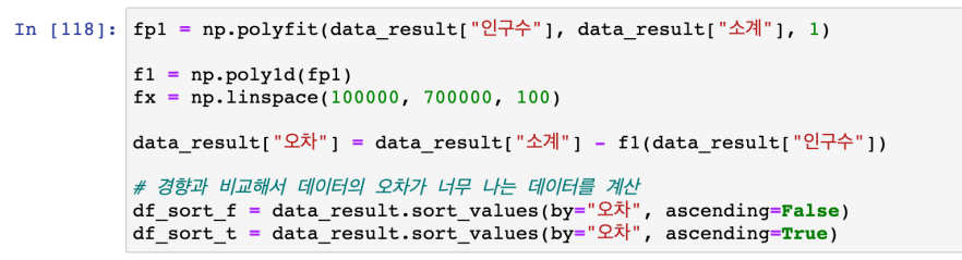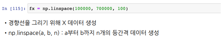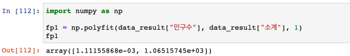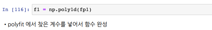 np.polyfit(x축데이터, y축데이터, 그래프 차수) -> 직선 1차식