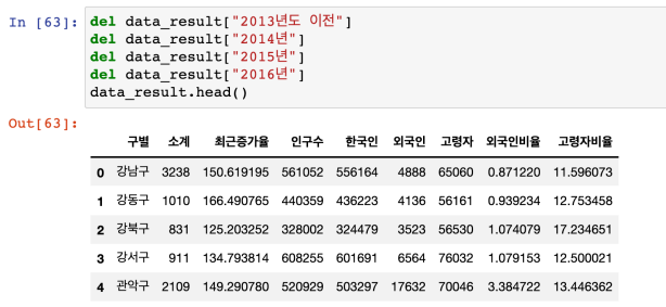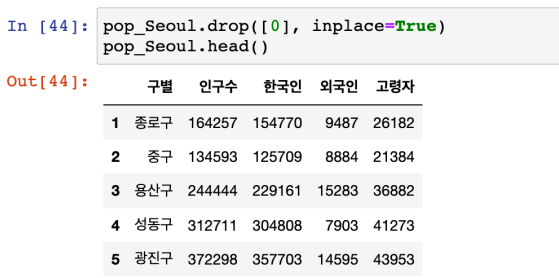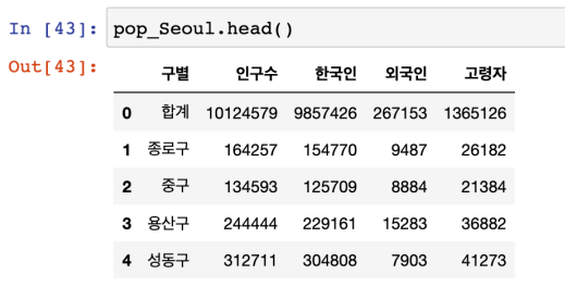 "../data/01. Seoul_Population.xls", header=2, usecols="B,D,G,J,N"
