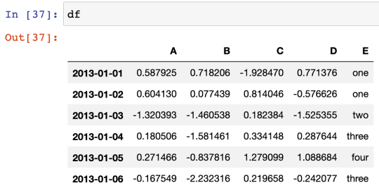 5) E라는 컬럼에 two나 four가 있는 것(True인 것)만 표시해라