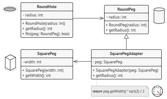 // 실제로 어댑터에는 SquarePeg(정사각형 못) 클래스의 인스턴스가 포함되어