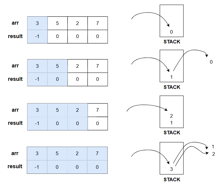 if(stack.isEmpty() || arr[stack.peek()]>=arr[i]){