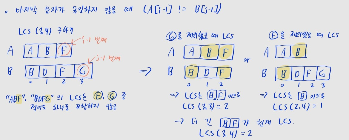 # 적어도 한쪽의 마지막 문자는 LCS에 존재하지 않으니