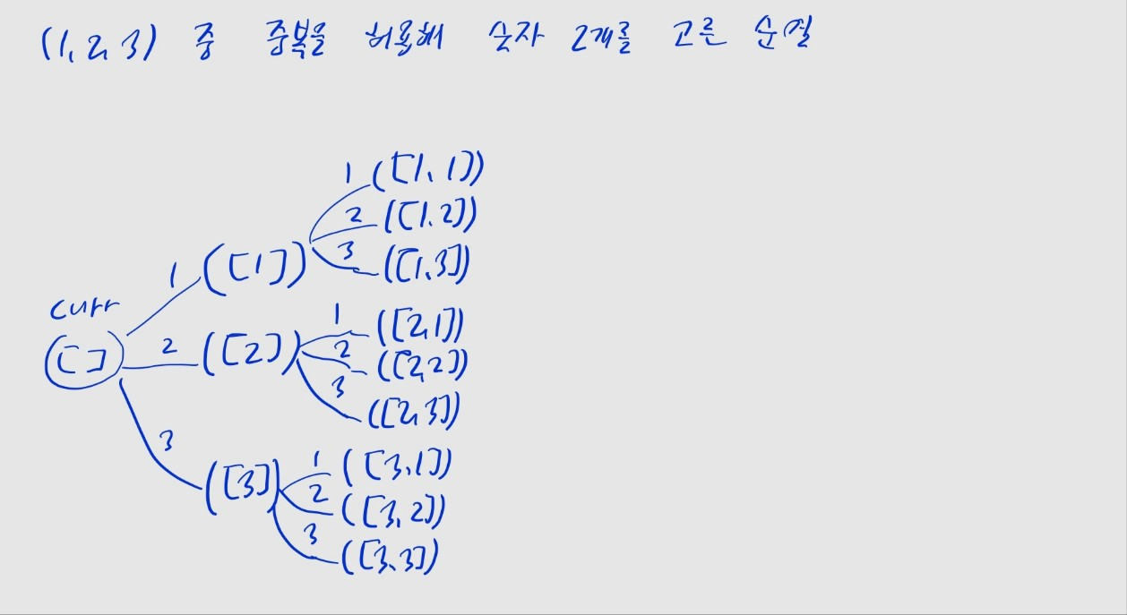 pick(i + 1, k) # 동일 값을 허용: k+1가 아닌 k부터 뽑기 허용