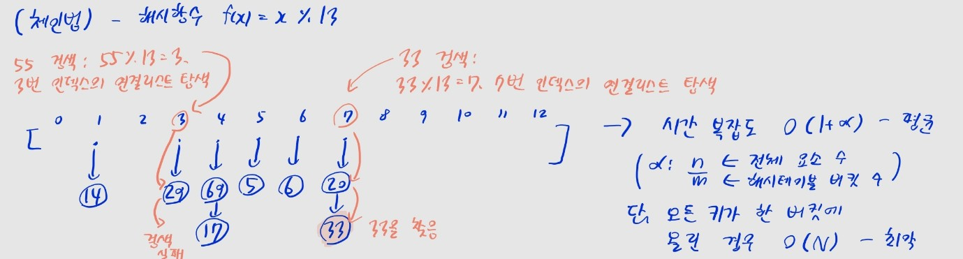 - e.g., 키가 17일 때, 17mod13=4이므로 17은 4번째 인덱스에 저장됨