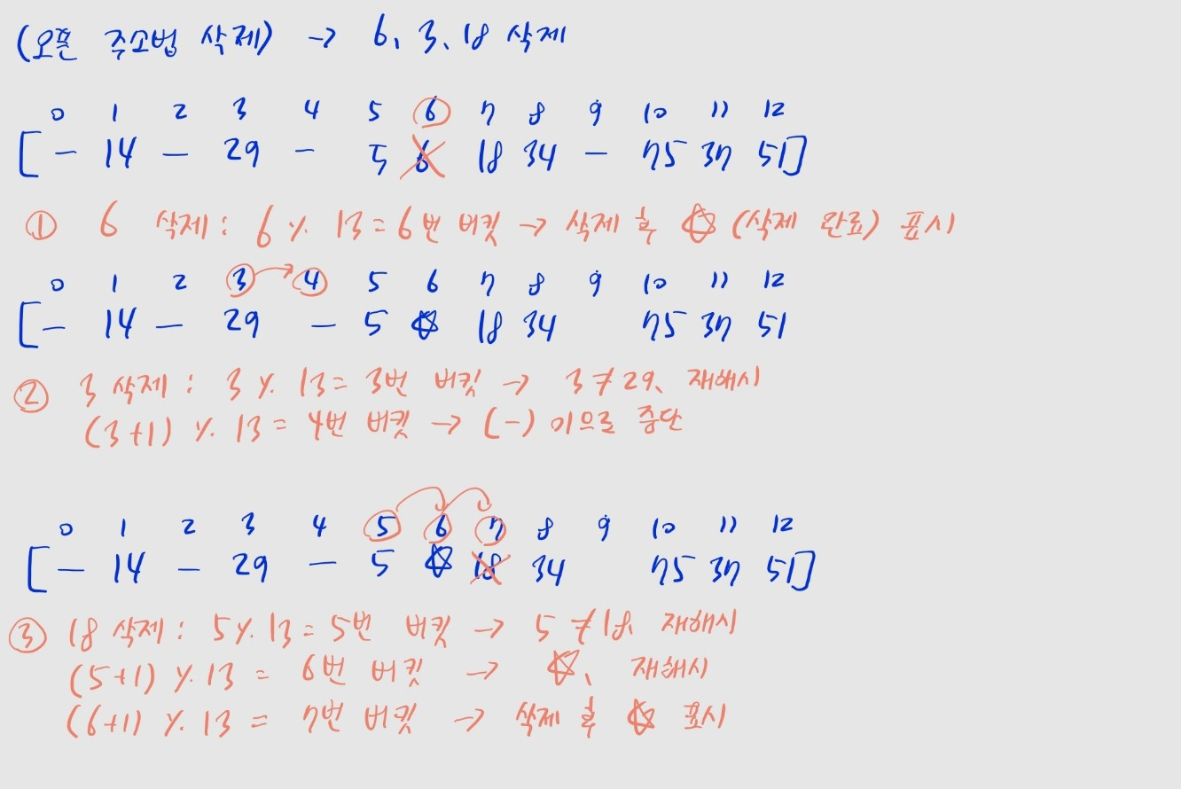 - (2단계) 해당 인덱스의 연결 리스트를 스캔하며, 삭제할 노드를 탐색