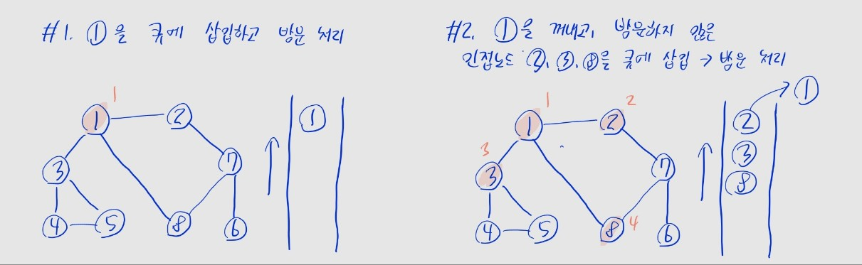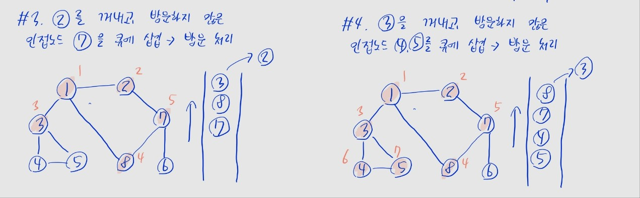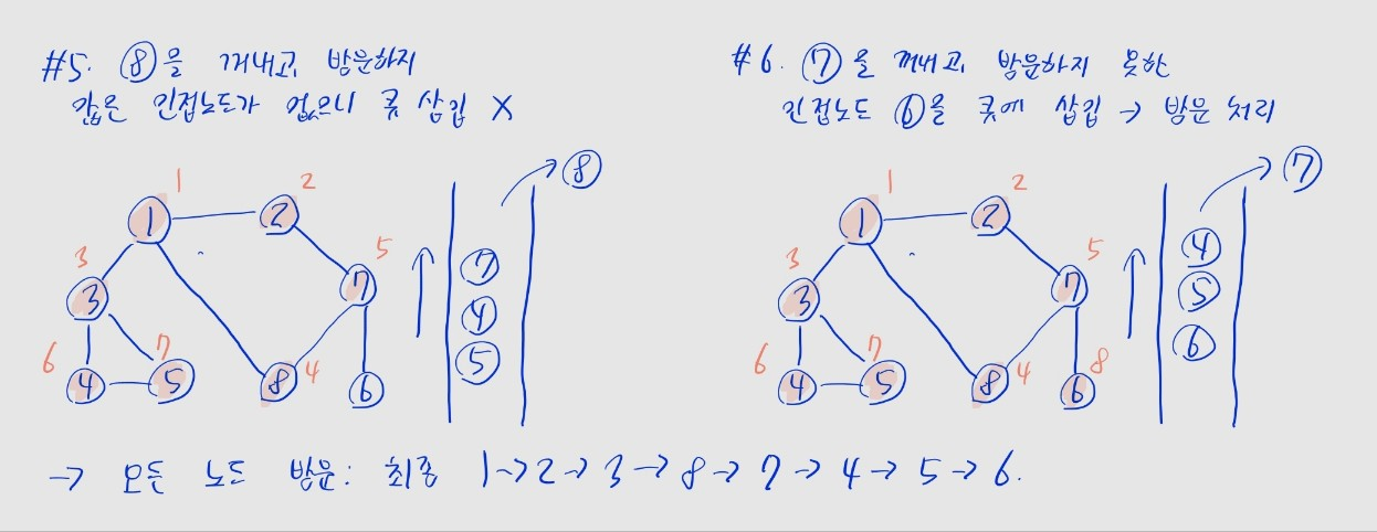 (1) 방문(2, 3, 8) 방문(7, 4, 5) 방문(6) 방문1로 동일하게 간주할 수 있다는 점 기억하시죠?graph = [