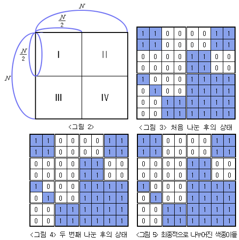 • 분할 조건: 하얀색 칸, 파란색 칸이 섞여 있을 때