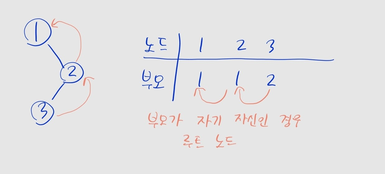 # 루트를 찾을 때까지 (부모가 자기 자신일 때까지)
