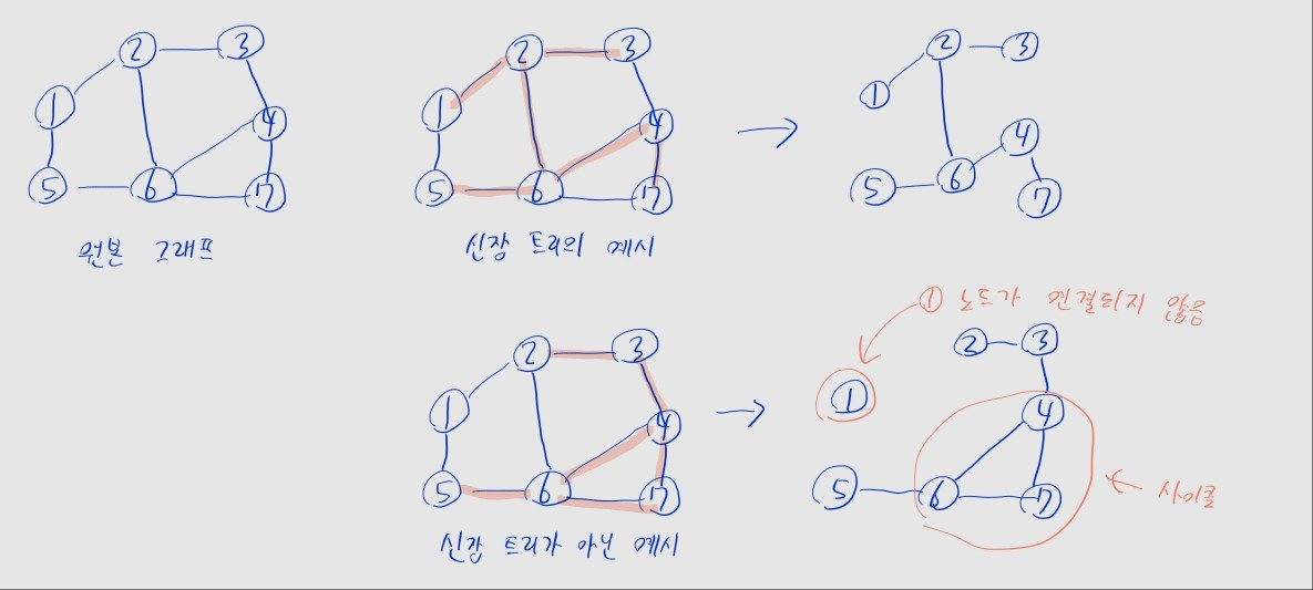 신장 트리의 간선 개수 = 노드 개수 - 1