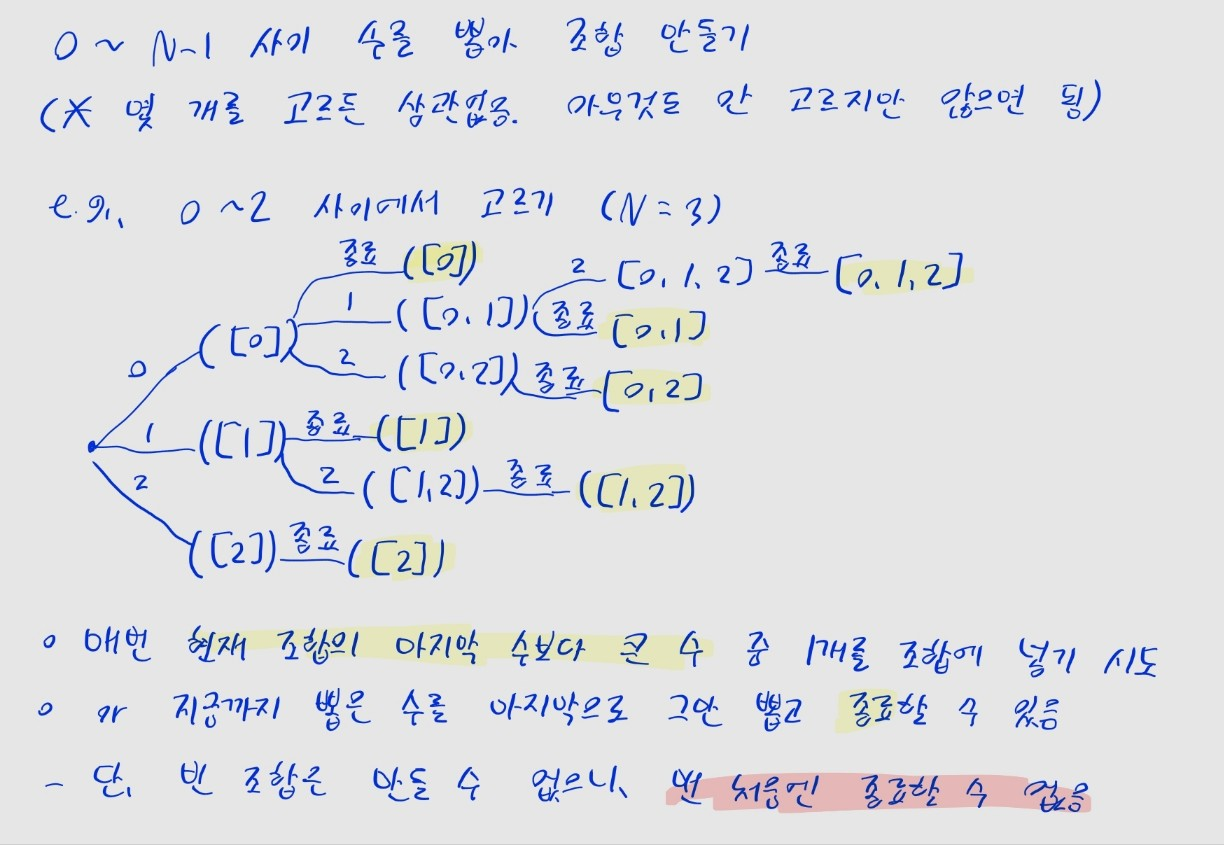 0부터 N-1에서 조합을 뽑아 이를 부분수열로 구성할 수 있음