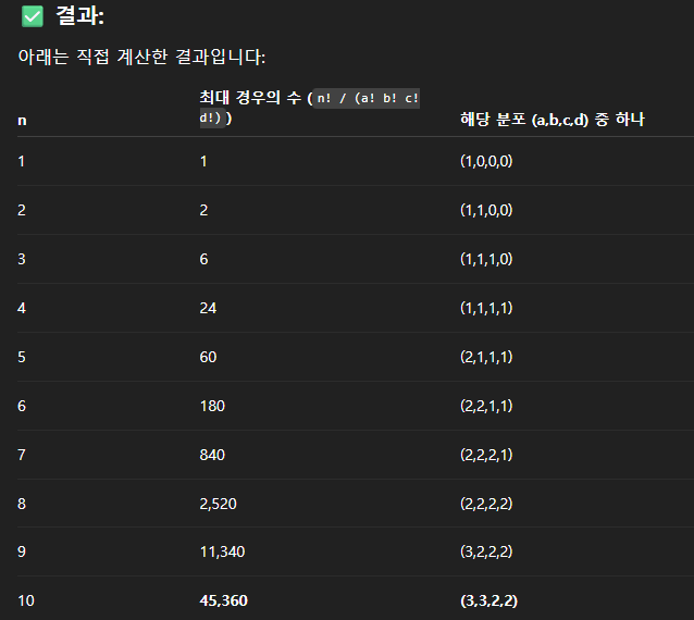 e.g., A = [1, 2, 3, 4]이며, 1개, 1개, 1개가 주어졌을 때