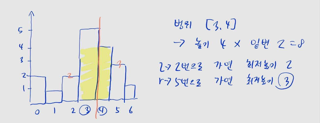 # 인덱스 start부터 end까지 히스토그램의 최대넓이