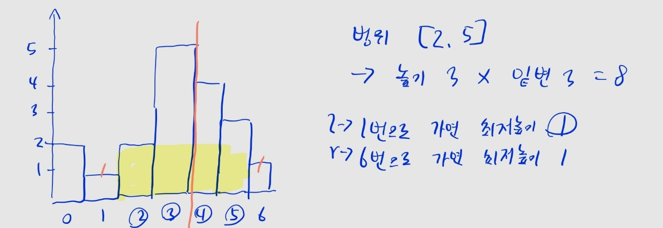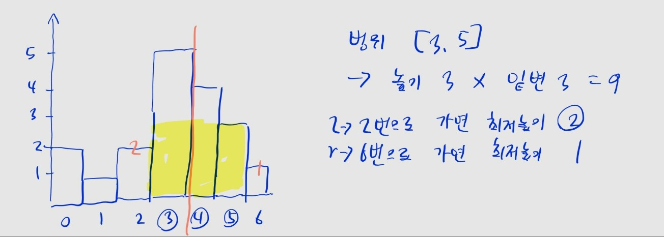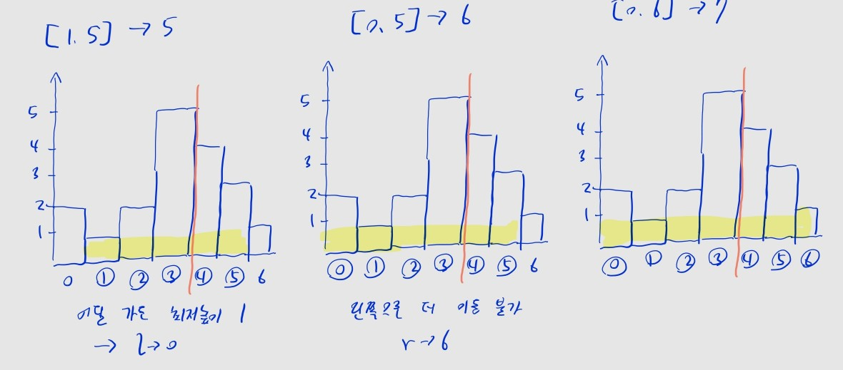 area = (r - l + 1) * height # 현재 탐색한 막대기 넓이