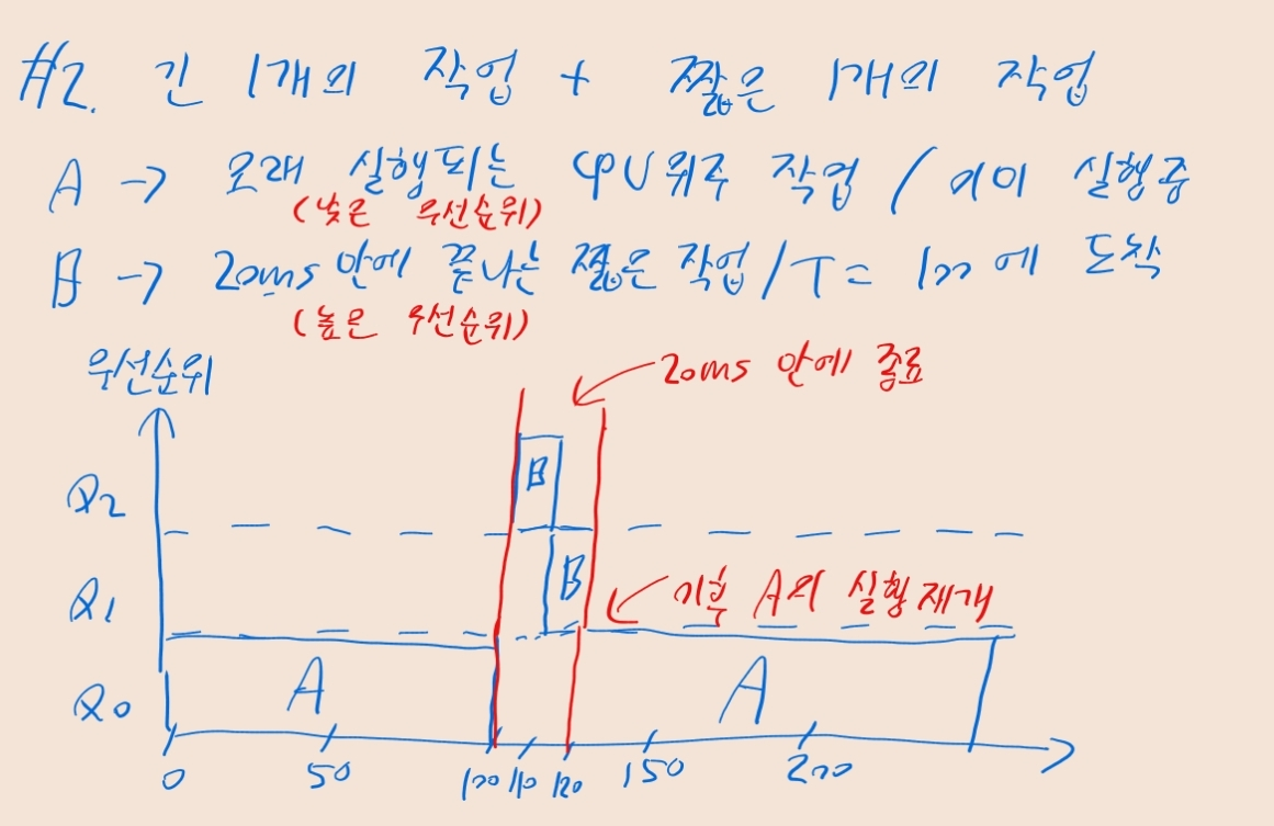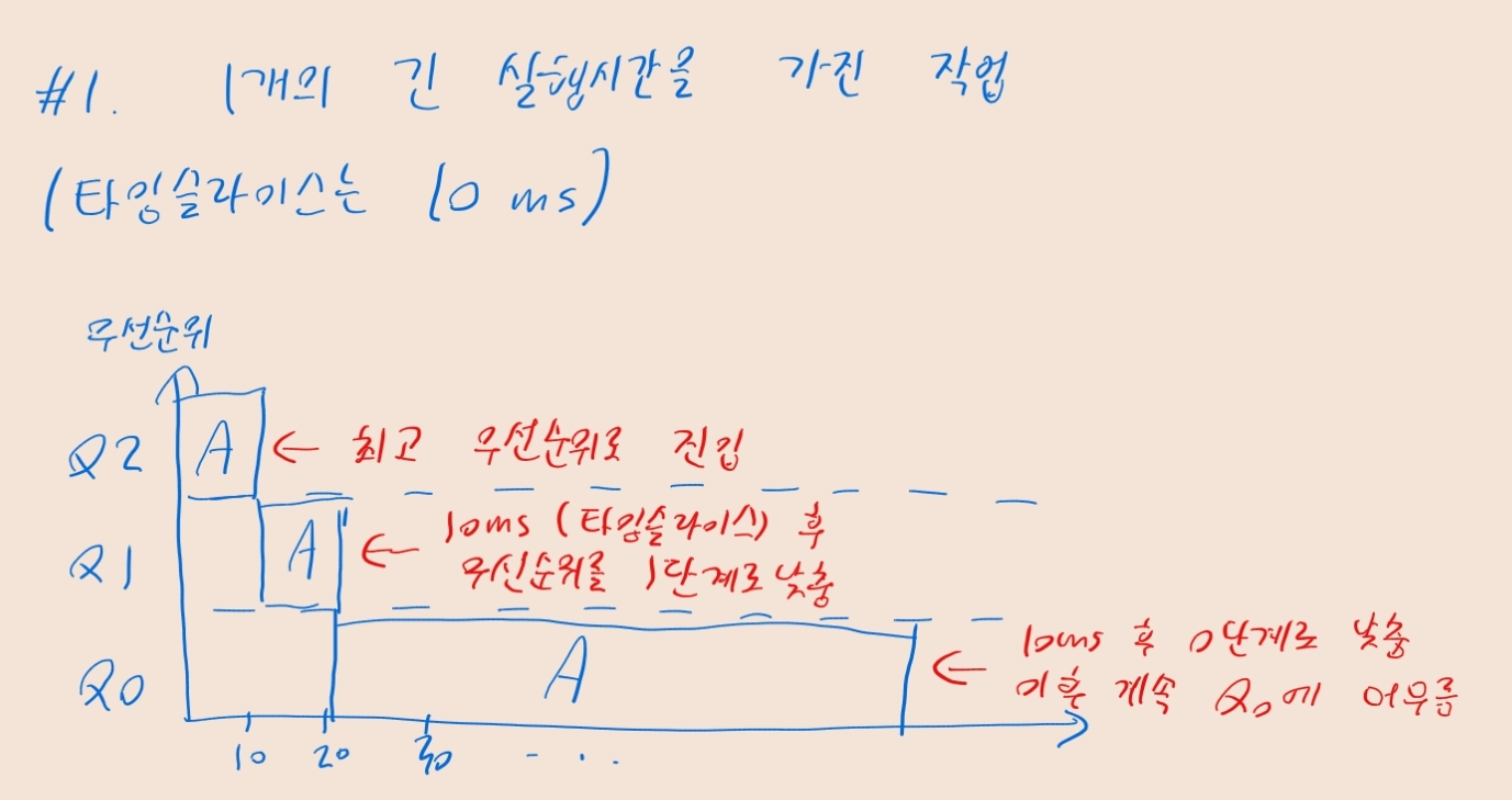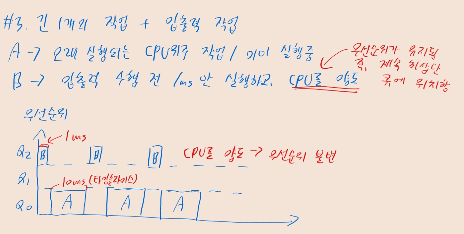 작업 종료 - 작업 도착)과 반환 시간(작업 첫 스케줄링 - 작업 도착)에 대해서 배웠음.ready_list도 여러 개로 만들어야 할 수도 있을듯??멀티레벨 피드백 큐는 우선순위를 사용