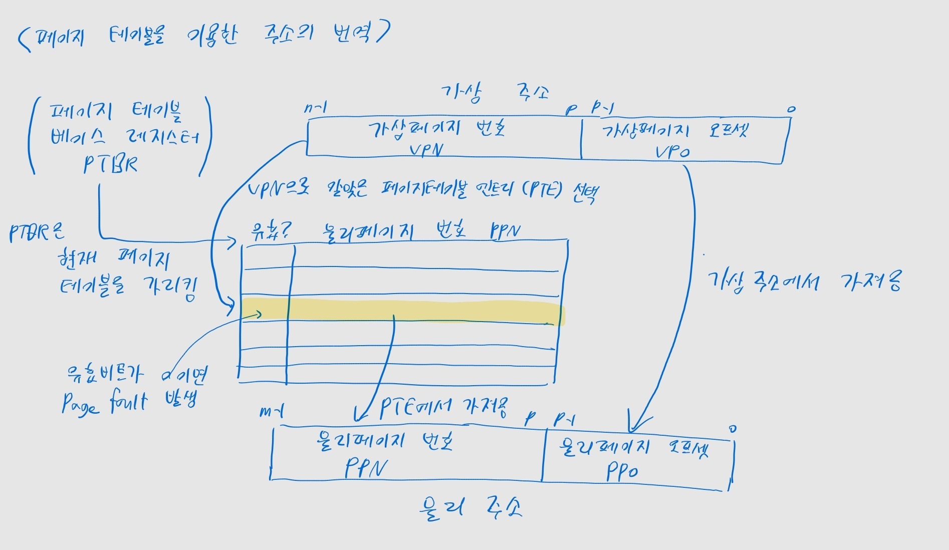 현재 프로세스의 페이지 테이블 주소는 PTBR(페이지테이블 레지스터)에 저장됨