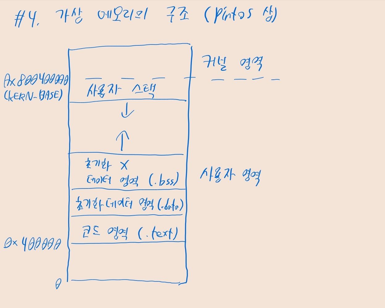 0부터 KERN_BASE-1 (기본값 0x8004000000)KERN_BASE부터 나머지 영역struct thread의 uint64_t *pml4는, 해당 쓰레드의 PML4 테이블 주소를 저장함KERN_BASE는 물리 주소로 0, KERN_BASE + 0x1234는 물리 주소로 0x1234와 같은 방식KERN_BASE 이상인 경우. is_kernel_vaddr, is_kern_pte 써라!)KERN_BASE 미만인지만 확인하고, 다른 경우는 userprog/exception.c의 page_fault()에서 처리해도 괜찮음. 하지만 위 방법이 간단해 보여서, 정리는 하지 않았음.filesys 폴더의 filesys.h, file.h에 많이 있는데, 얘를 수정할 필요는 없음.make check는 자동으로 해 주는데, 직접 테스트 케이스 돌릴 거면 이런 절차를 진행해야 함.pintos --fs-disk=10 -p tests/userprog/args-single:args-single -- -q -f run 'args-single onearg'