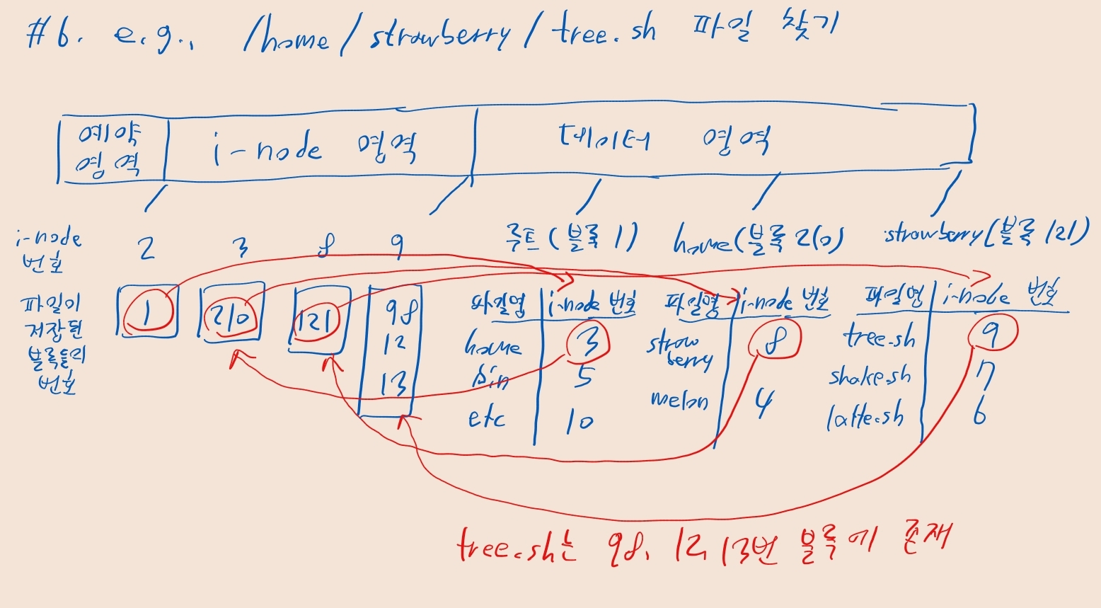 - i-node 영역: 각 파일의 i-node 블록들이 저장됨