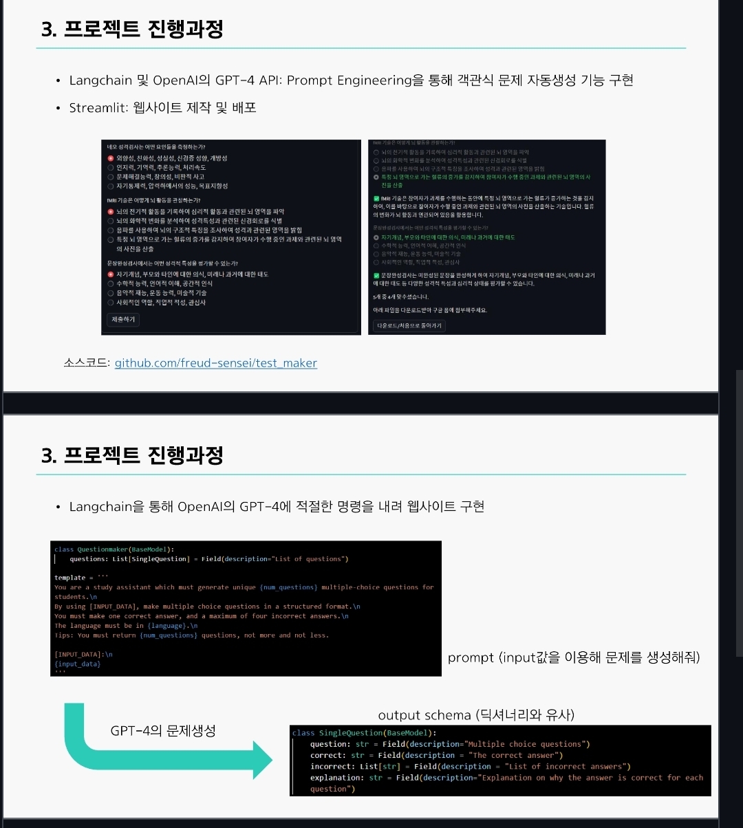 웹프로그래밍 밖으로 범주를 넓히자면, langchain 프롬프팅 미니프로젝트를 과제로 몇번 했지만, 아무래도 기술적 챌린지보단 사회과학적/교육학적 결론을 내는 것에 집중했다보니, 이력서와 핏이 맞을 지 모르겠다.