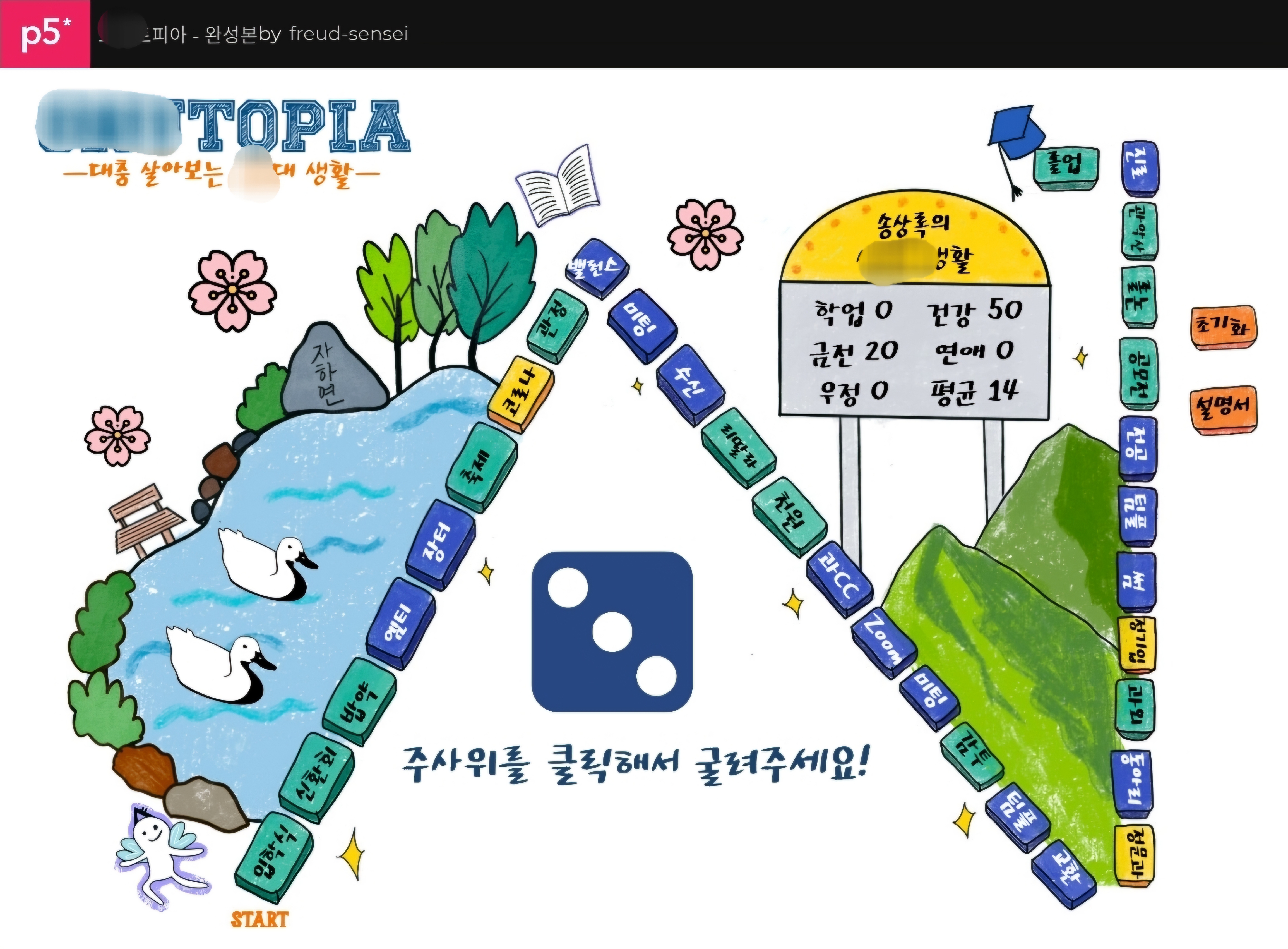이건 대학 2학년때, 그니까 5년전에 교양수업에서 만든 웹게임이다. AI도 없을 때 만들었어서 삽질을 많이 하긴 했는데, 구체적으로 어떤 삽질을 했나 기억 안난다... 같이 만드신 선배님 잘 살아계시나요?