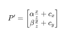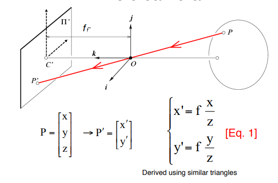 P는 image plane 상에 P' = 으로 투영될 것이다.