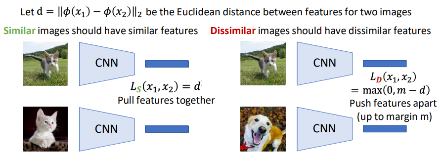 similar이미지는 가깝게, dissimilar 이미지는 멀게 학습한다.