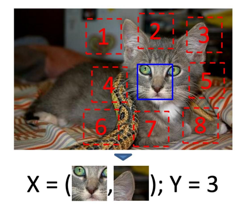 Context Prediction은 가운데 패치와 주변 패치를 입력으로 어디에 들어갈 지를 예측하는 모델이다.