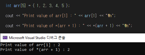 3. 배열의 이름으로 인덱싱 하는 것은 포인터의 주소연산으로 치환될 수 있다.